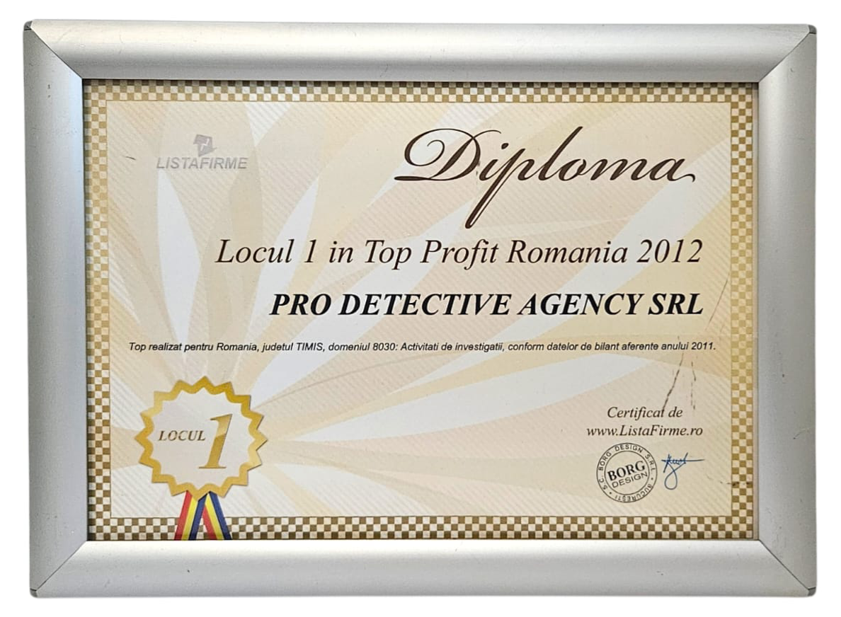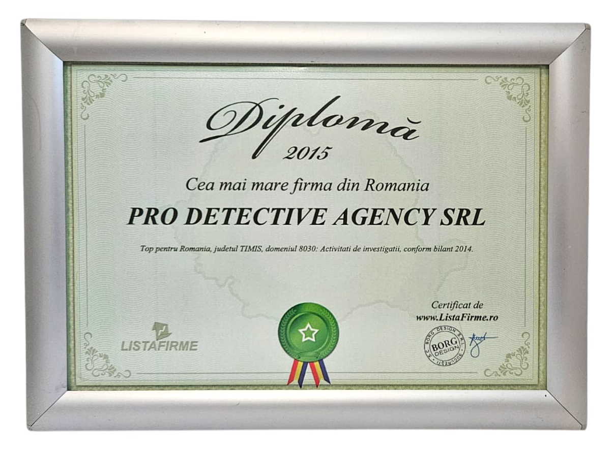 Agentia de detectivi particulari Timisoara "Pro Detective Agency" s-a constituit si inregistrat la Oficiul Registrului Comertului de pe langa Tribunalul Timis (Timisoara),in anul 2005, fiind printre primele  agentii licentiate de detectivi particulari din Romania.